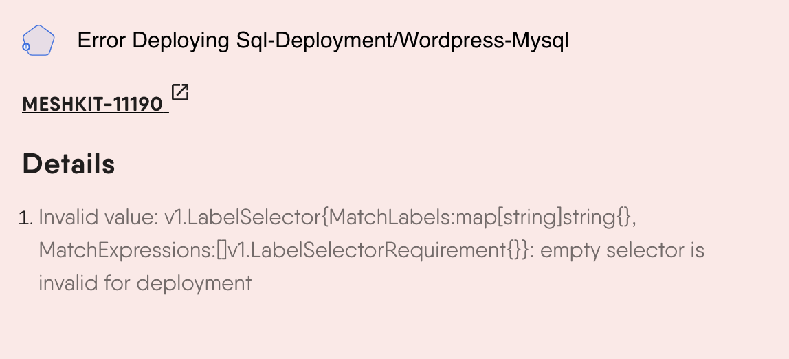 As a system, Meshery itemizes different errors that occur and assigns a unique error code to each along with details on how to remediate the issue at hand.